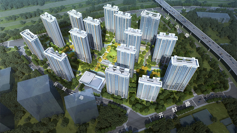 开封路保障性住房项目位于青岛市北区唐河路以东、规划长沙路以南。对外交通便利,教育、医疗、商业等生活配套便捷。总用地面积约5.93万㎡,容积率2.87,绿地里35.1%。规划15栋19-27F高层住宅和2栋公服配套用房。总建筑面积约24.46万㎡。其中地上建筑面积约18.36万㎡,地上不计容建筑面积约1.33万㎡,地下建筑面积约6.09万㎡,共计1812户。